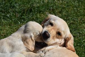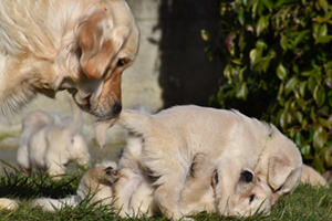Il primo elemento che viene in mente ad un allevatore attento e competente, è che a neanche due mesi i cuccioli giocano al fight club dalla mattina alla sera, e nel mentre la mamma si fa serenamente i fatti suoi. Etologi di fama internazionale riferiscono che capita, per altre razze, che sia opportuno addirittura dividere i cuccioli. E sì, cuccioli cresciuti con madre e fratelli in un contesto ideale, quando vengono adottati dalla famiglia felice, mordono come dei barracuda. Un cucciolo che morde può essere eccitato, stressato, stanco, affamato... ma la capacità di non fare del male durante il gioco si sviluppa tra i 2 e i 4 mesi, e riguarda quelle che sono in generale le competenze sociali e la crescita del cucciolo, non quanto la madre lo ha inibito.
