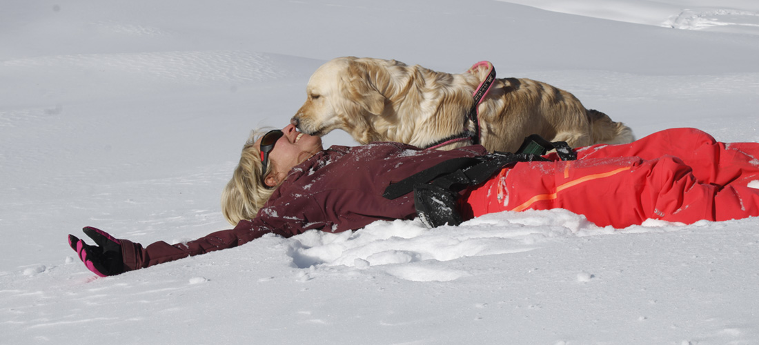 Raccomando di non iniziare prima dei 12 mesi ad avventurarsi su sentieri impervi (sì a strade poderali in falso piano dopo i 9-10 mesi) o con dislivello, per non rischiare movimenti e affaticamenti non opportuni alle articolazioni ancora in accrescimento. Tutti i miei cani sono liberi in montagna, ma sono educatissimi sia con le persone che con gli altri animali che incontrano. Mi raccomando, no al collare (pericoloso se resta impigliato in qualche ramo, ad esempio) ma sì alla pettorina, svedese o ad H, meglio se con la maniglia, per comodità e velocità di presa. Vorrei che i cani vivessero la montagna secondo la loro natura, ma raccomando di rispettare e salvaguardare la fauna selvatica nei suoi spazi e nella sua sicurezza.