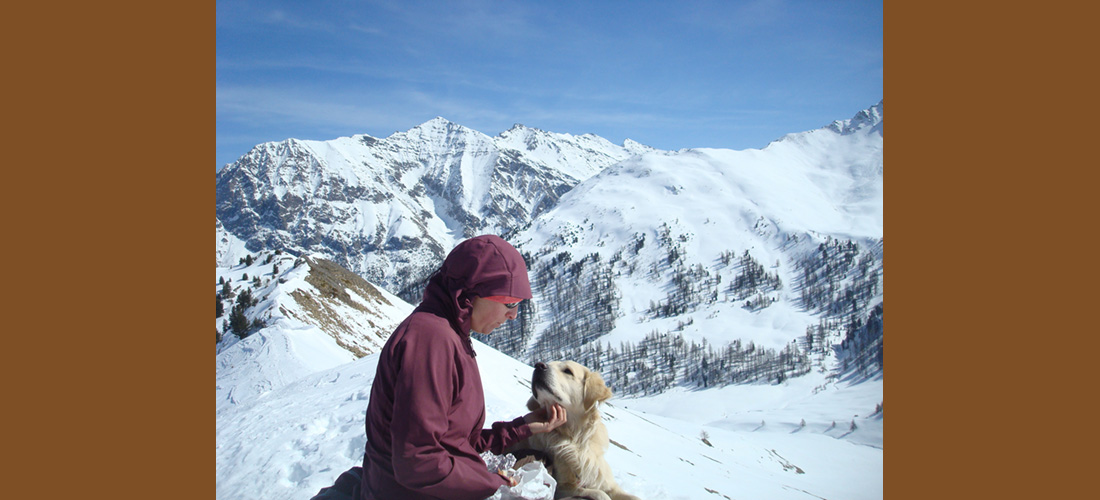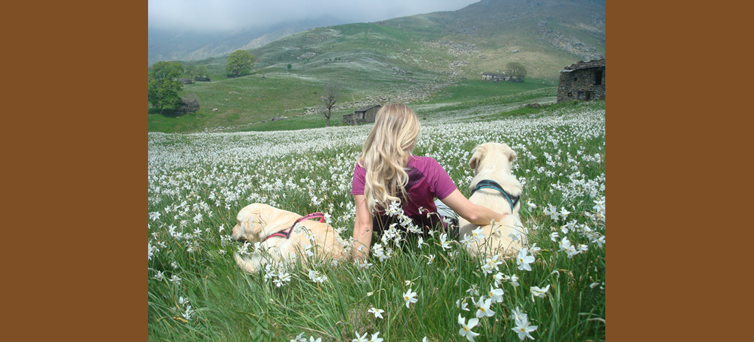 Le passeggiate in montagna con i miei cani sono viaggi che ci portano in tempi e spazi irripetibili: siamo sì lontani dalla vita quotidiana, ma in mezzo alla natura e fuori dal nostro bozzolo di comodità riusciamo a creare una dimensione più intima. E forse apparteniamo più a questa che a quella fatta di cemento, luci e wifi.